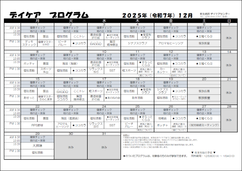 - 一日の通所者平均が30名~40名でアットホームな雰囲気です。