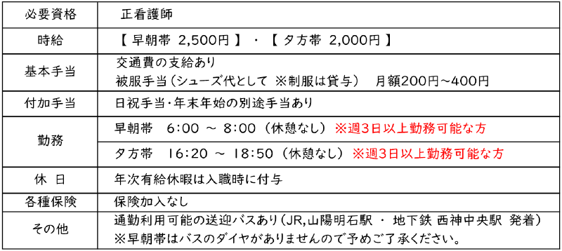 募集内容②:病棟看護師(早朝帯・週3日以上)